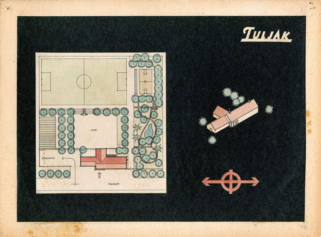 Sõjajärgsel perioodil valminud eramud on äratuntava stiiliga. Neid kõrge viilkatuse ja tõstetud räästajoonega kivihooneid leidub kõikjal üle Eesti. Säärase arhitektuuriga hoonetüüp pärines Saksa traditsioonilisest heimatarhitektuurist, mis romantiliste aknaluukide ja tõstetud katuseräästaga mõjus koduselt. Hoonetüübi stilistika oli meeltmööda ka valitsevale stalinistlikule võimule: see oli piisavalt erinev sõjaeelsest lamekatusega hoonetüübist, mis sobimatuid lääneeuroopalikke väärtusi kandis. Tallinnas Hiiul asuva elamu projekteeris arhitekt 1954. aastal. Projekti kinkis muuseumile Maria Tarvas 2006. aastal koos mitmete perekonnaarhiivist pärinevate materjalidega.